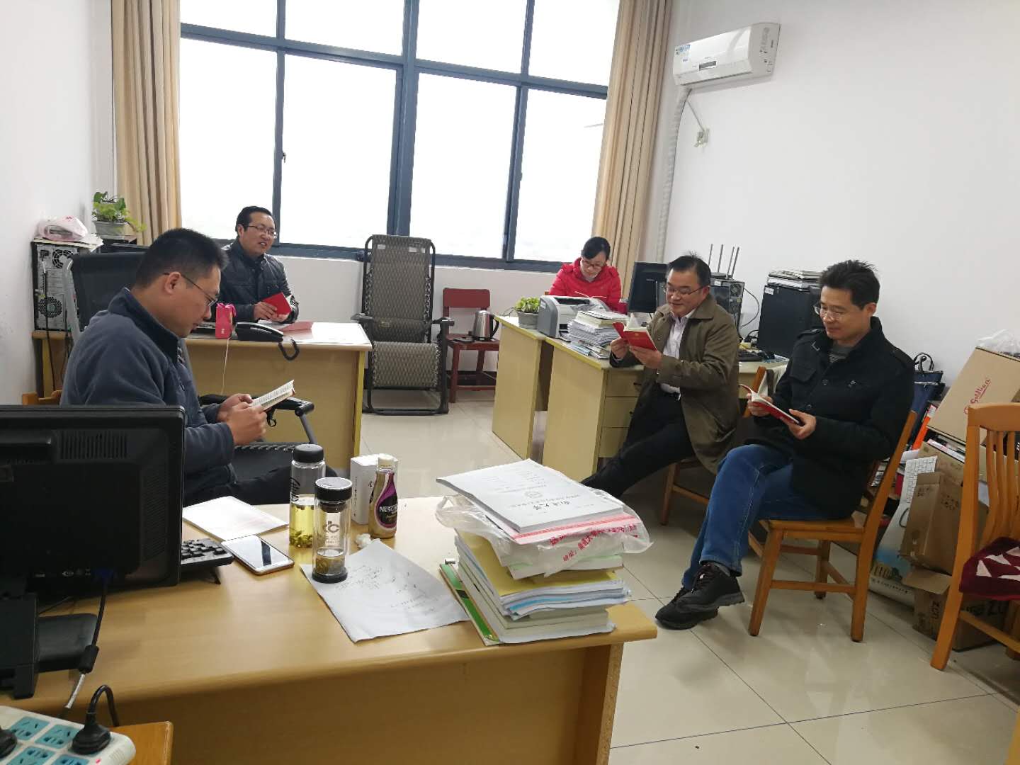 1129日下午,行政党支部召开党员会议学习“十九大”报告精神,党支部书记丁兵主持学习会。全体党员学习了新党章,大家对新党章所做的修改部分着重进行了学习和探讨。党总支书记陈炜参加了支部学习活动,他要求全体行政党员要不忘初心、牢记使命,将思想统一到党的十九大精神上来,工作中要不断创新突破,主动作为,全心全意做好服务工作。