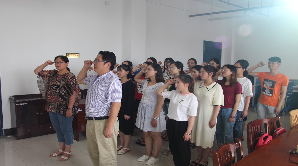 2018年7月2日下午,投注 在主校区教学18号楼1016会议室隆重举行新党员入党宣誓仪式。投注 党总支副书记徐红波担任领誓人并在仪式上讲话。