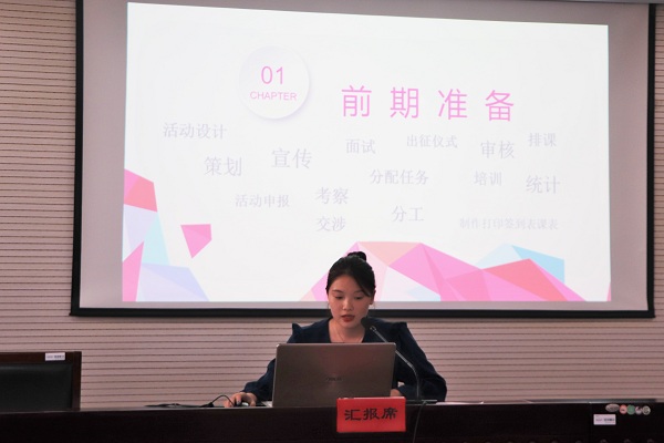 成果汇报会由墨香逸雅爱心服务团、扶苗计划、情系村小爱心支教团、Vlog记录暑期生活实践小分队这四个团队的负责人主讲,各团队从实践前期策划,实践过程、实践成果、实践总结这四个方面对各自的暑期社会实践作了总结。