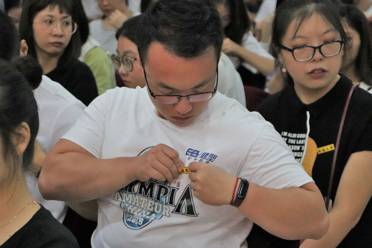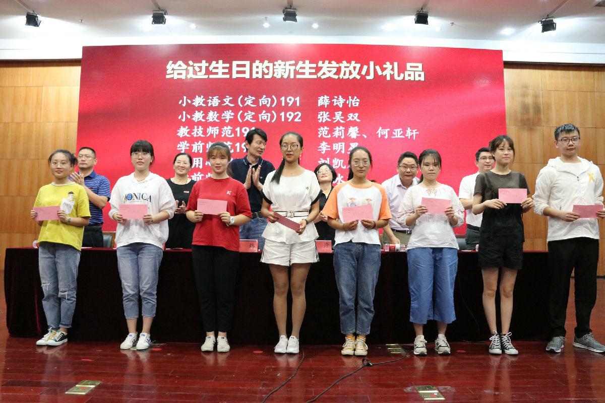 还特意为开学一周内过生日的十名同学送上了精心准备的生日礼物,让新生们感受到来自教科院大家庭的温暖。典礼上,全体新同学为自己佩戴上投注