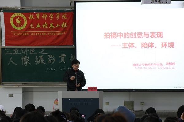 12月4日,投注 于1号教学楼205教室举办以“人像摄影赏析”为主题的三五讲座。此次讲座由黄新辉老师主讲,教科院280余名学生到场聆听。