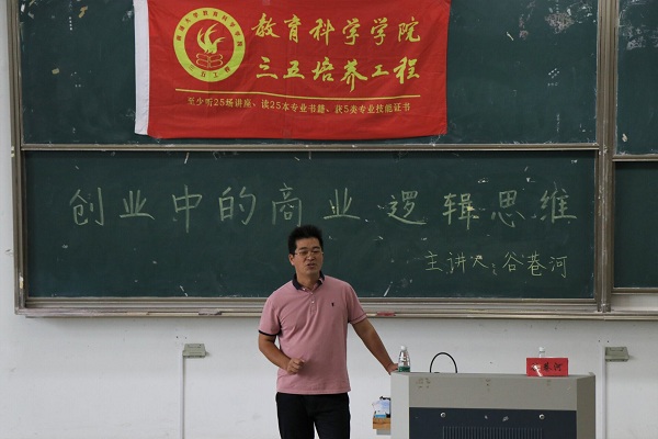 10月14日,投注 于9号教学楼202教室举办以“创业中的商业逻辑思维”为主题的三五讲座。此次讲座由投注 2008届优秀校友谷巷河主讲,教科院近200名同学聆听了本次讲座。