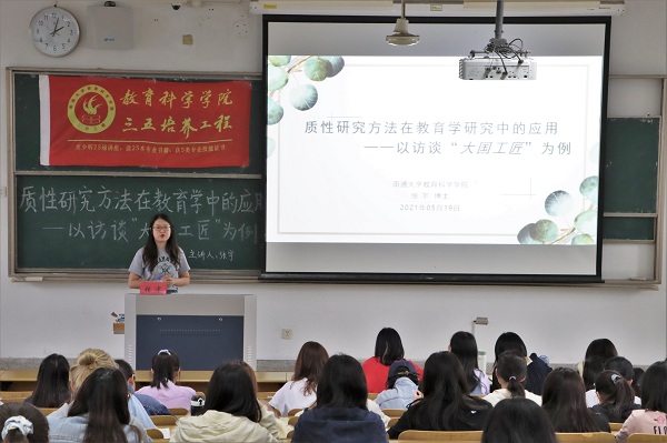 2021年5月19日,投注--官方-体彩-福利彩-专业首选 在主校区4号教学楼203教室成功举办了以“质性研究方法在教育学中的应用”为主题的三五讲座。此次讲座由张宇老师担任主讲老师,来自教科院的260余名学生参加了本次讲座。
