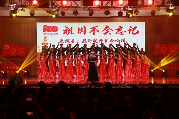 晚会在师生红歌合唱《祖国不会忘记》中拉开帷幕。由投注免费游戏 全体领导成员以及师生代表组成的合唱团用歌声向党的生日献上最真挚的祝福,用歌声赞扬了在祖国大地默默耕耘、无私奉献的人们。开场舞《一起跳舞吧》充分彰显了教科学子的蓬勃朝气。晚会分为三个篇章次第进行。第一篇章“青春拂晓,梦想起航”在红歌串烧中徐徐展开,百年征程书写光辉党史,筚路蓝缕绘就中华盛世。一首首经典红歌的背后是对老一辈同志峥嵘岁月的追忆,亦是对新时代少年风发意气的展望。现代舞《花枪》将国风元素融入新时代的鼓点,用舞姿演绎出巾帼不让须眉的气概。百年亦是风华正茂,诗朗诵《少年中国说》以饱满激昂的热情,铿锵有力的语调传递出少年复兴中华的坚定理想信念。