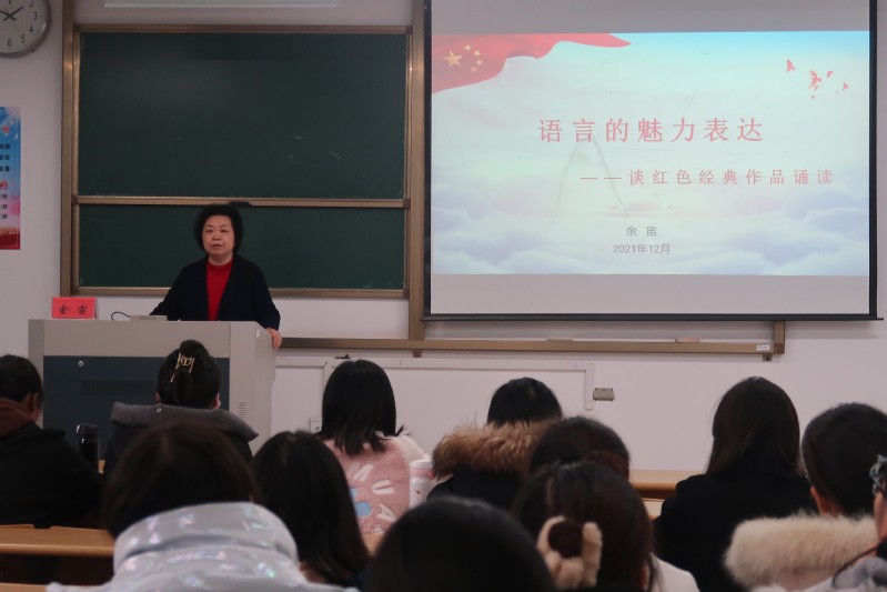 12月8日下午,国家级普通话测试员、南通市朗诵学会副会长、南通市教育局副调研员余宙应邀为我校投注免费游戏 师生做了题为“语言的魅力表达——谈红色经典作品诵读”的专题讲座,70余名小学教育、学前教育专业学生参加了本次讲座。