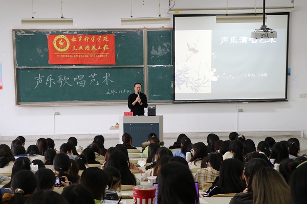 2021年11月17日14:00,投注--官方-体彩-福利彩-专业首选 在主校区9号楼201教室成功举办了以“声乐歌唱艺术”为主题的三五讲座。此次讲座由王志国老师主讲,来自教科院的260余名学生参加了本次讲座。