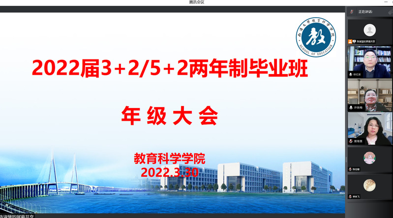 3月30日晚,投注免费游戏 3+2、5+2毕业生年级大会通过腾讯会议在线上举行。学院副书记副院长徐红波、副院长许铁梅、初教系主任濮海慧、学工办主任陈淑慧以及140名毕业班学生参加此次会议。