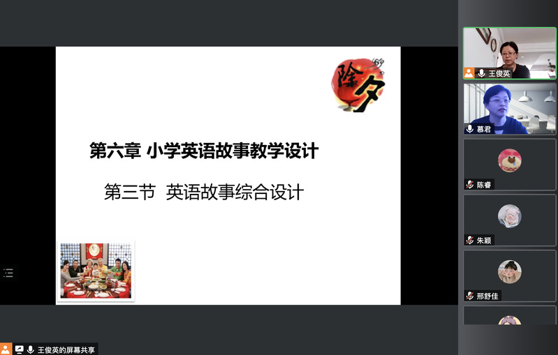 2022年5月21日下午,投注 教师王俊英在腾讯会议平台以“小学英语故事综合教学”为主题,进行小学英语教学设计课程思政暨教授公开课,小教英语(定向)201班全体学生准时参课。教研室慕君主任和其他教师观摩本课程。