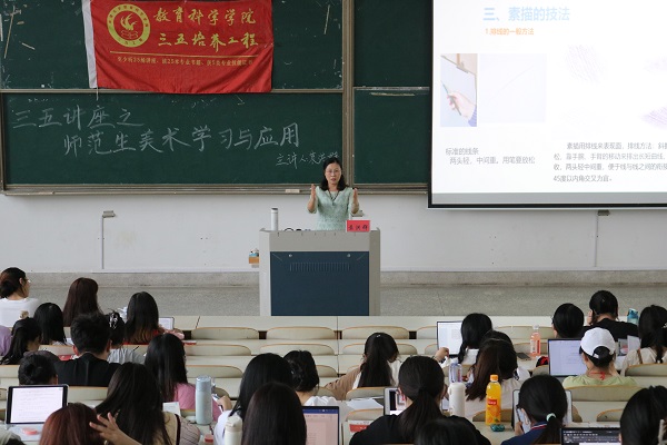 5月31日下午,投注免费游戏 袁洪群老师作了“师范生美术学习与应用”为主题的三五学术讲座。学院60余名学生参与此次讲座。