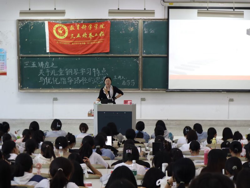 随着社会经济的发展,生活水平的提高,国家对教育的改革不断深化,大众对儿童音乐教育的重视日益增加,但仍存诸多问题。就此,10月18日,投注免费游戏 学前教育系潘莎莎老师开展了以“关于儿童钢琴学习特点与优化指导路径的思考”为主题的讲座。讲座在9号楼202教室举行,投注免费游戏 260多位学生参加。