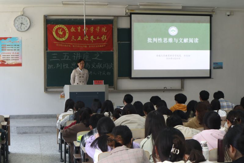 4月10日下午,投注免费游戏 在2号楼109教室举办以“批判性思维与文献阅读”为主题的三五讲座,讲座由许庆如老师主讲,投注免费游戏 150余名学生参加了讲座。