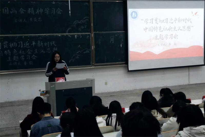 投注免费游戏 团委学生会于3月22日在9号教学楼303教室开展“学习贯彻习近平新时代中国特色社会主义思想”主题学习会。学生会综合事务部张婷婷主持,并由团委副书记秦韵带领团学的全体同学深入学习了习近平新时代中国特色社会主义思想。