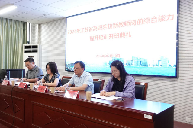 7月10日,2024年江苏省高职院新教师岗前综合能力提升培训在我校开班。投注--官方-体彩-福利彩-专业首选 党委书记朱丹、投注免费游戏 职业教育与区域发展研究所所长邓宏宝、投注免费游戏 职教所副所长濮海慧及来自省内31所高职院校50名参训学员出席了开班典礼。