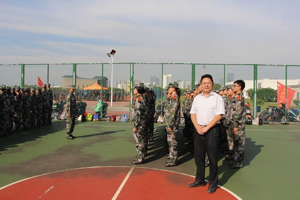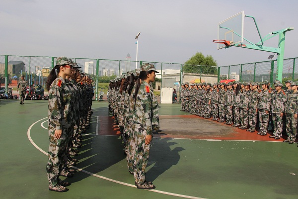 9月17号上午,2015级新同学在东篮球场迎来了军训的第一天。大家穿好军训服装, 排着整齐的队伍,等待教官的到来。九月的天气,太阳还有一些火辣,同学们在教官的指挥下,首先按照个子高矮重新整好队伍,开始了一天的训练。同学们按照教官的示范,练习基本动作,立正、稍息,每一个动作都争取做到标准有力,整齐划一。学院党总支副书记、副院长徐红波率三位辅导员老师陈淑慧、魏琳、赵敬龙来到军训场地,给同学们的军训生活加油鼓劲。