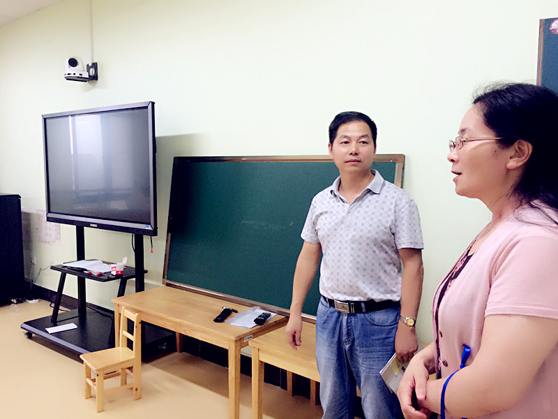 为了落实江苏省《卓越教师培养计划项目实施管理办法》,检查、促进卓越教师培养项目的实施。9月6日下午,教务处顾健辉副处长在投注免费游戏 许铁梅副院长的陪同下到投注免费游戏 实验中心调研并指导江苏省卓越教师项目中期现场会暨学前教育专业认证推进会准备工作。通过现场参观,实地考察,顾处在对实验中心建设工作肯定的同时,也对目前的不足给予了宝贵的意见,他指出我们要在有效整合校内资源的前提下,充分利用公共教育平台,充分调动教师和学生的积极性,打造专业特色。