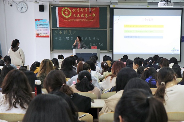 10月21日,投注--官方-体彩-福利彩-专业首选 于八号教学楼203教室举办以“大学生宿舍人际关系漫谈”为主题的三五讲座。此次讲座由蔡婧老师主讲。教科院160余名学生到场聆听讲座。