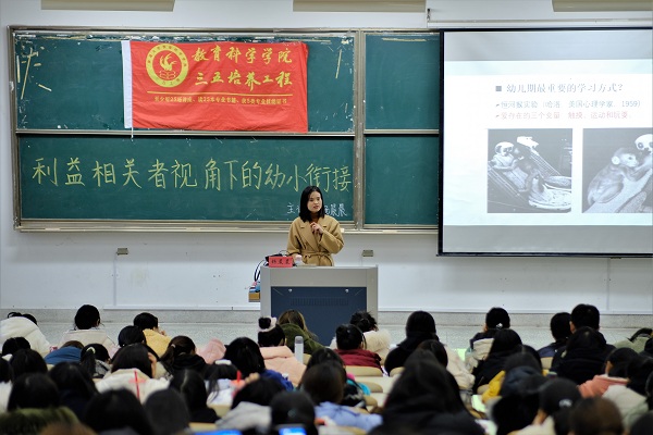 12月3日下午,投注--官方-体彩-福利彩-专业首选 在9号教学楼302教室成功举办了以“利益相关者视角下的幼小衔接”为主题的三五讲座,此次讲座的主讲老师是杨晨晨老师,来自教科院的260余名学生参加了本次讲座。