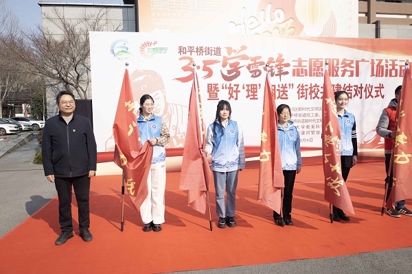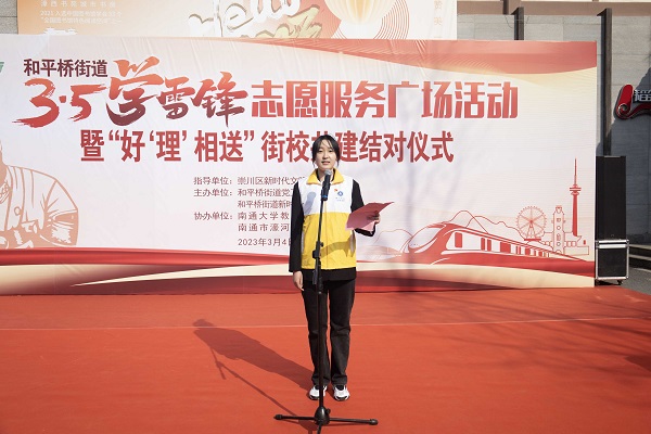 3月4日上午,投注--官方-体彩-福利彩-专业首选 本科生党支部联合南通市崇川区和平桥街道在濠西书院广场共同开展三月学雷锋志愿活动。