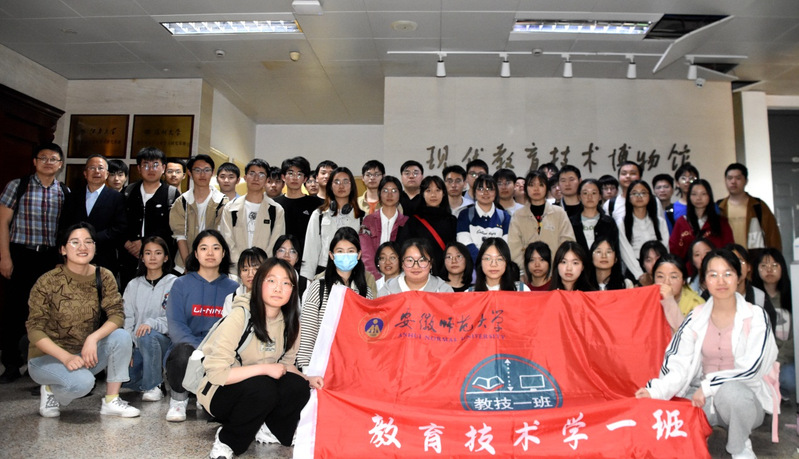 4月23日下午,安徽师范大学教育技术学专业师生一行62人,在系主任肖文博士的带领下,到我校现代教育技术博物馆参观见习。