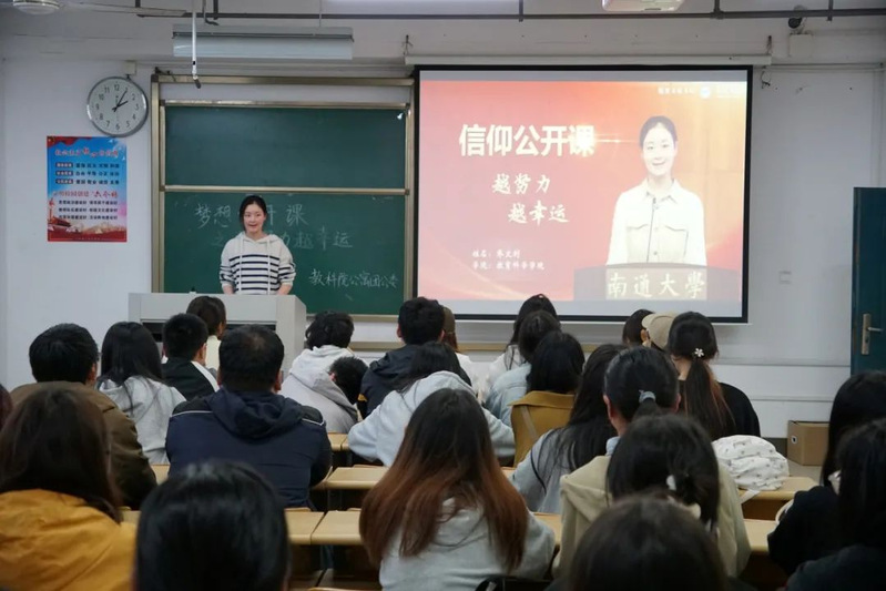 4月28日下午,投注免费游戏 于38号楼102教室举办了以“越努力越幸运”为主题的信仰公开课。本次信仰公开课由投注免费游戏 教育技术学(师范)优秀毕业生乔文剑担任主讲人,投注免费游戏 2022、2023级全体学生参加。